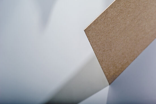Für EcoBoard Kraft Duo kaschieren wir ein starkes, reissfestes Kraftpapier auf einen Kern, der zu 100 % aus Recyclingfasern besteht.
