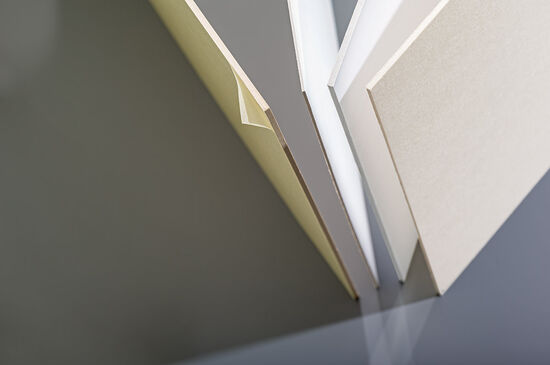 Maschinenholzpappe, kaschiert, beidseitig farbig oder weiss