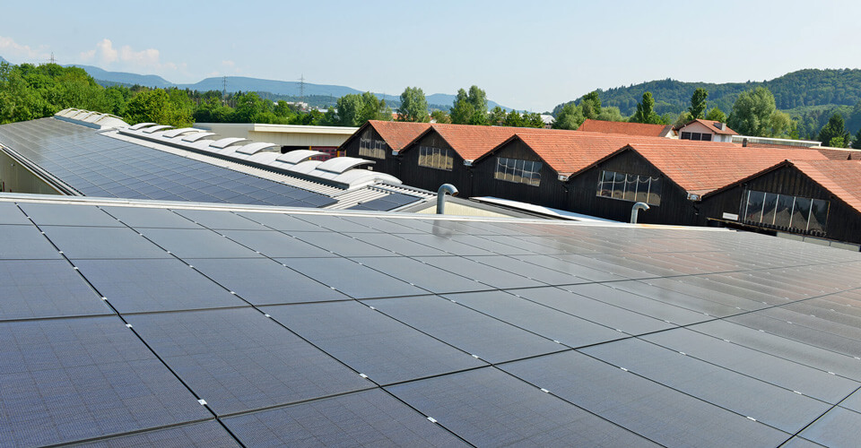 Unsere neue Photovoltaik-Anlage erzeugt auf einer Fläche von 5000 m2 jährlich etwa 860'000 kWh. Dies entspricht dem Verbrauch von 180 Haushalten oder ca. 80 % unseres Strombedarfs.